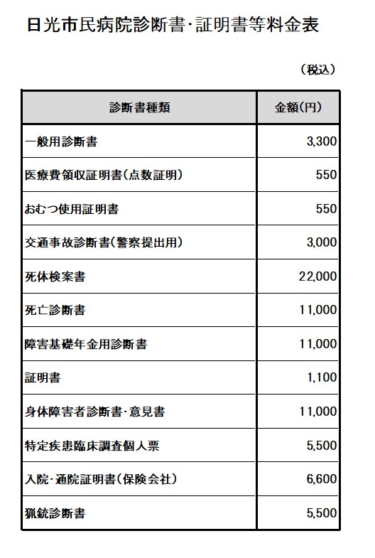 患者様およびご家族様へ昨今の諸経費の値上がりに伴い、令和8年4月1日依頼分より文書料及び材料等の料金を改定させていただきます。ご負担をお掛けしますが、ご理解の程よろしくお願いいたします。